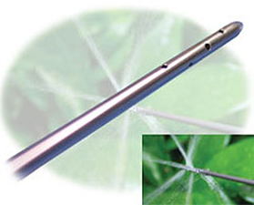 tumescent technipueにおいて注射器を使用することなくボスミン入り生理食塩水の注入を迅速に満遍なく行う事が可能です。らせん状に穴が開いています。